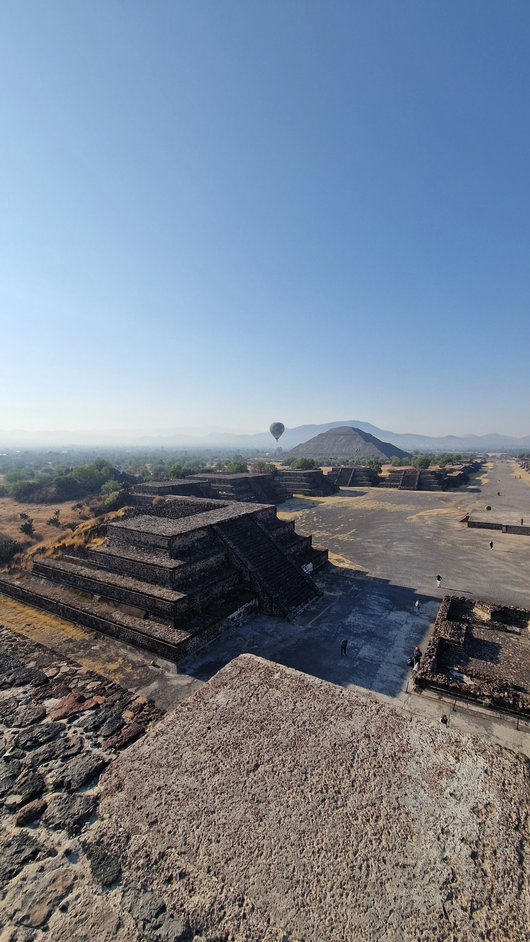 Once we recovered from the worst of the jet lag, we were already rewarded with a highlight at the very start of our trip. Teotihuacan! The Sun and Moon pyramids, located just an hour’s drive outside Mexico City, belong to one of the most important ancient cities in the Americas. Teotihuacan was constructed roughly between 100 BCE and 550 CE and, at its height, is estimated to have housed between 100,000 and 200,000 people, making it one of the largest urban centers in the world at the time. The city was carefully planned around a central ceremonial avenue known as the Avenida de los Muertos, or the Avenue of the Dead. Even today, it is not precisely known who originally built these impressive monuments, though scholars agree that the Aztecs encountered the ruins of this vast metropolis long after its collapse. Researchers believe the city was abandoned sometime between 550 and 650 CE, but the exact reasons remain debated. The most widely accepted explanation points to internal social unrest and rebellions triggered by environmental stress and prolonged drought, which together likely undermined the city’s stability. The site opens at 8 in the morning and we made sure to be there prior to the opening, in order to avoid the masses of tourist arriving with buses from Mexico City. During the first half hour, we were almost alone at the site which allowed us to climb the Sun Pyramid and have a beautiful view along the empty Avenida de los muertos. We spent some good three hours at the pyramids, before we grabed an Uber to the small village of Teotihuacan where we had some nice tacos for lunch.